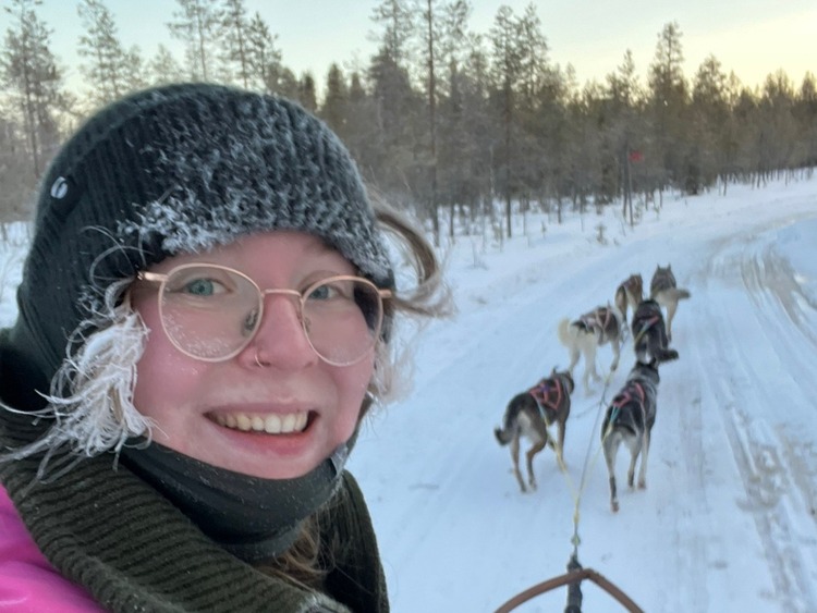 Lotte started here as an intern some years ago and returned to work for the full 22-23 season. She fell in love with Yla during her internship and adopted her at the end of the 23 season! We are so happy she is back this winter, even if it is just for one day a week! Lotte is originally from the Netherlands but she has lost her heart to the north and moved next door in 2023. Lotte is an allrounder, she is guiding shorter and multi-day husky tours, take care of the dogs and she helps out with grooming trails.