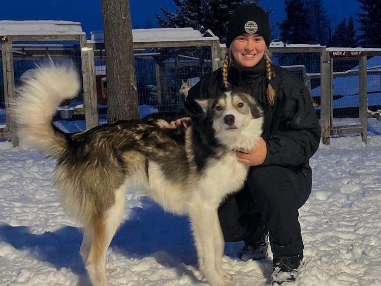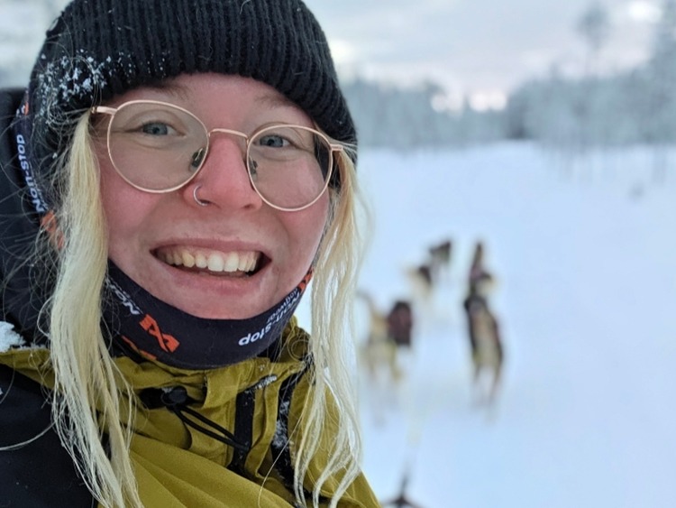 Hej I’m Lotte, from the Netherlands and I started here as an intern in the ’21-’22 season and stayed to work the full ’22-’23 season! I fell in love with Yla during my internship and adopted her after my second season and decided to move next door! On my days off from my fulltime job as an outdoor guide at a nearby lodge you will find me here doing some guiding, trail grooming and ofcourse spending time with the lovely doggies!